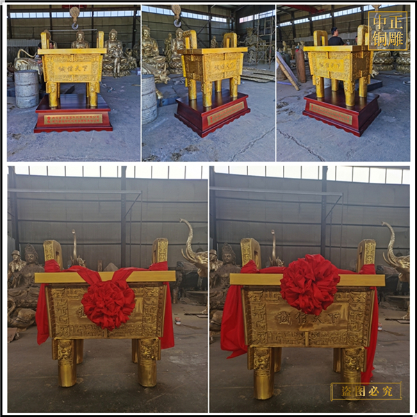 中正銅雕-鑄造1.5米銅鼎、鑄造1.5米銅鼎價(jià)格、鑄造1.5米銅鼎廠家,我公司集科研、開發(fā)設(shè)計(jì)、普通鑄造、一次性整體澆鑄、精密鑄造于一體。本公司技術(shù)力量雄厚,設(shè)備,不但重視中國青銅器原有的藝術(shù)風(fēng)格,還繼承了文物原有的藝術(shù)品味,在繼承和發(fā)揚(yáng)古老文化的同時(shí),更深一步為新老客戶定身量制各種銅制、鐵制工藝品等產(chǎn)品,曾多次受到寺廟長老和美術(shù)學(xué)院教授的好評。