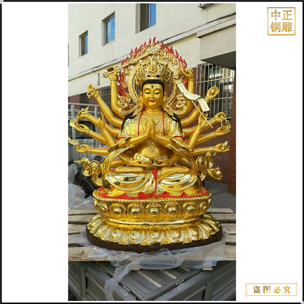 中正銅雕-彩繪千手觀音菩薩銅像、彩繪千手觀音菩薩銅像價格、彩繪千手觀音菩薩銅像廠家,我公司實行現(xiàn)代化企業(yè)管理,成功導入TPS生產管理系統(tǒng),形成集塑制泥塑模型、泥稿后翻制模具、翻制石膏模型、工藝師加工制作、營銷為一體化作業(yè)的生產線,加上先進的銅雕加工設備,優(yōu)秀的美術設計師,雕刻經驗豐富的制作人員, 造型精美,精雕細琢,深受客戶的好評。