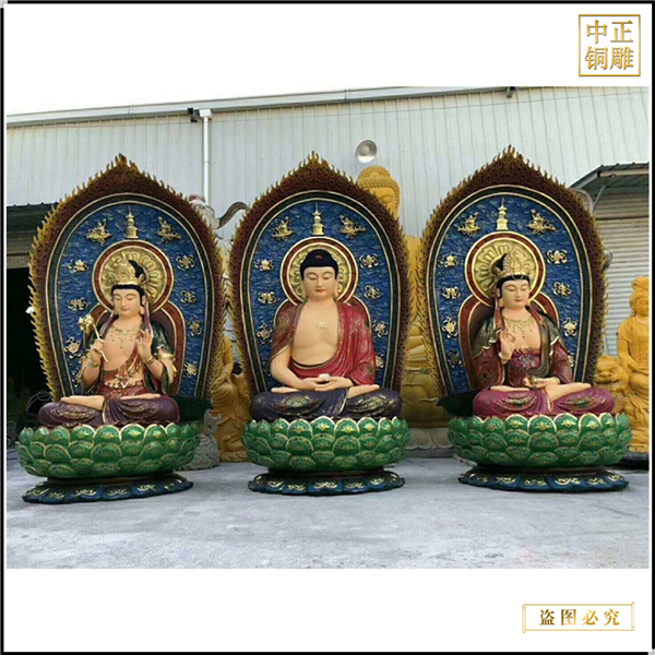 高一米西方三圣貼金彩繪像、高一米西方三圣貼金彩繪像定制、高一米西方三圣貼金彩繪像價格