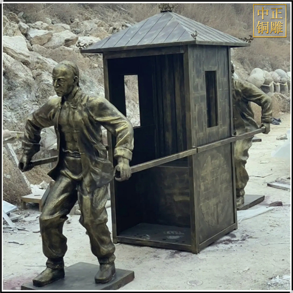 中正銅雕-抬轎子景觀人物雕塑、抬轎子景觀人物雕塑價格額、抬轎子景觀人物雕塑廠家,我公司集科研、開發(fā)設計、普通鑄造、一次性整體澆鑄、精密鑄造于一體。本公司技術力量雄厚,設備,不但重視中國青銅器原有的藝術風格,還繼承了文物原有的藝術品味,在繼承和發(fā)揚古老文化的同時,更深一步為新老客戶定身量制各種銅制、鐵制工藝品等產(chǎn)品,曾多次受到寺廟長老和美術學院教授的好評。
