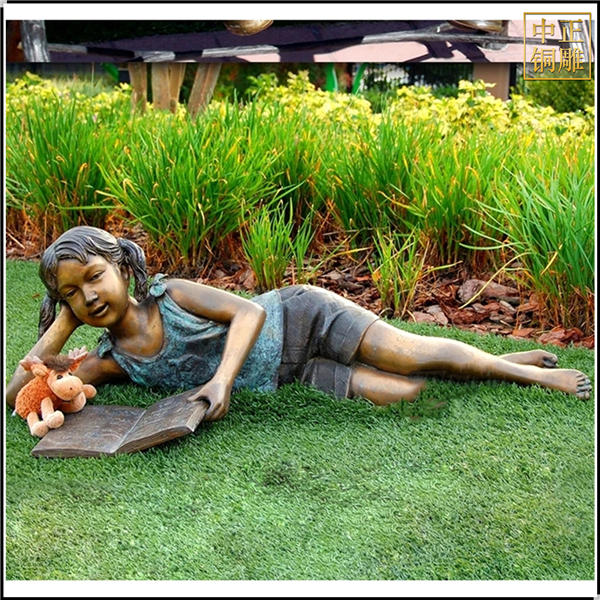 躺草坪上看書小女孩銅雕塑、躺草坪上看書小女孩銅雕塑價格、躺草坪上看書小女孩銅雕塑廠家