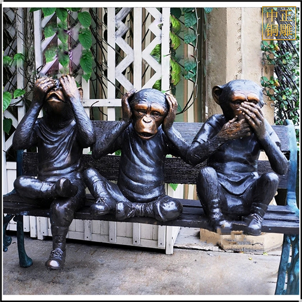 中正銅雕-三只小猴子景觀雕塑、三只小猴子景觀雕塑價格、三只小猴子景觀雕塑廠家,我公司集科研、開發(fā)設計、普通鑄造、一次性整體澆鑄、精密鑄造于一體。本公司技術力量雄厚,設備,不但重視中國青銅器原有的藝術風格,還繼承了文物原有的藝術品味,在繼承和發(fā)揚古老文化的同時,更深一步為新老客戶定身量制各種銅制、鐵制工藝品等產(chǎn)品,曾多次受到寺廟長老和美術學院教授的好評。