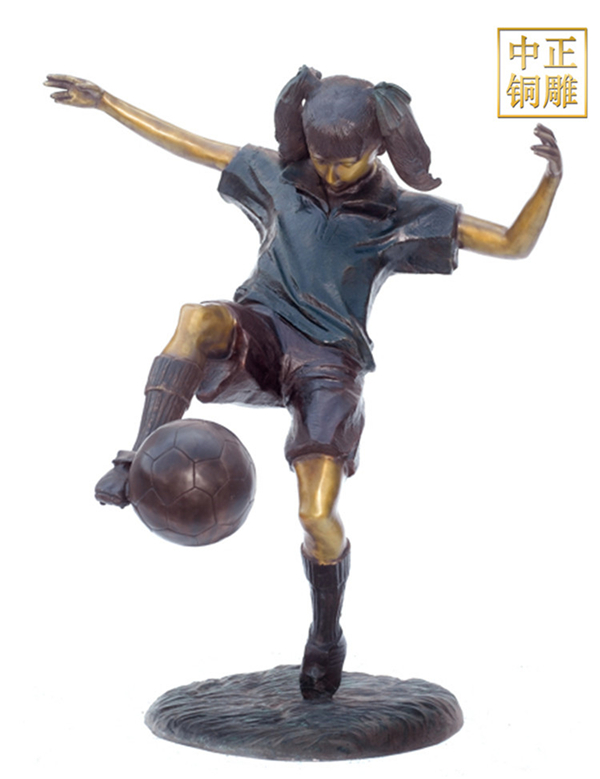 校園中踢足球銅雕塑非常受同學(xué)的喜愛,足球是目前全球體育界具有影響力的單項體育運動,有“世界運動”的美譽,它主要是用腳云支配球,也可以用頭胸等部位輔助觸球,而守門員可以在己方禁區(qū)內(nèi)用手或臂觸球,兩個隊伍各11人在同一場地內(nèi)進行攻守?,F(xiàn)如今足球運動已成為人們生活中不可缺少的組成部分,一場精彩的足球比賽已成為電視節(jié)目的重要內(nèi)容,可以吸引數(shù)以億計的觀眾。
