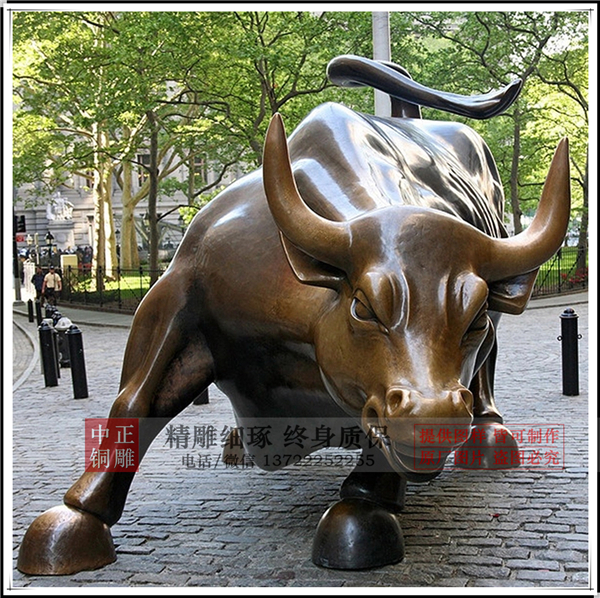 華爾街銅牛是非常有名的銅牛雕塑,我公司提供大華爾街牛的訂做,我們制做各種規(guī)格型號的華爾街銅牛作品。華爾街牛無論是做為廣場雕塑,還是做為園林雕塑,或者商業(yè)街雕塑、都是很適合的。您可以根據(jù)環(huán)境確定您要制做的華爾街牛的大小。