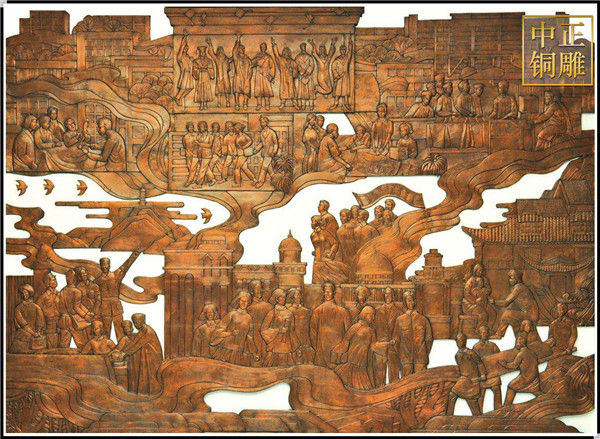 銅浮雕不僅是中國古文化藝術,銅浮雕還是浮雕廠代表性文化產(chǎn)業(yè)引進歐洲先進技術和工藝,銅浮雕有不銹蝕,不脫色的優(yōu)勢,經(jīng)過多道工序精制而成,在內(nèi)容和形式上與地方特色文化緊密結(jié)合,銅浮雕選材貼近現(xiàn)實生活,是民間的藝術精靈,他展現(xiàn)著人們的思想和審美,我們?nèi)粘?吹降母〉裼址旨t銅浮雕、紫銅浮雕、黃銅浮雕、鍛銅浮雕,它們分別又是什么呢?銅浮雕廠家?guī)阏J識一下。