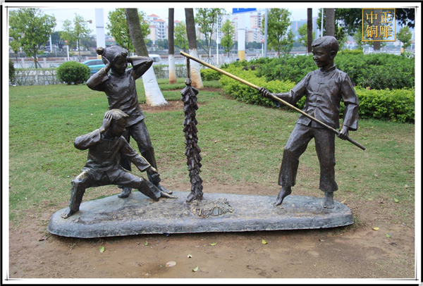 銅雕廠家發(fā)現(xiàn)習(xí)俗性的現(xiàn)象雕塑多以人物記事、社會場景為主,具有鮮明的人性化和人情味。它的表現(xiàn)手法多以風(fēng)格性為主,在城市街頭設(shè)置一些具有習(xí)俗性的現(xiàn)象雕塑,不只體現(xiàn)了地方的傳統(tǒng)韻味,還吸引著交游的人們寄托無限的情思。