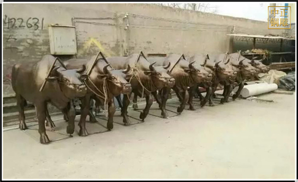 牛在動物界是為勤勞樸實、勤勤懇懇、任勞任怨的動物,牛的形象常被雕塑成各種造型,并賦予多種象征意義,比較常見的有開荒牛雕塑、華爾街銅牛雕塑、生肖牛銅雕塑等等,牛象征著春天,因為它在開春后就下地犁田,寄托著豐收的希望。在事業(yè)發(fā)展初期,可以用牛雕塑來促使自己努力工作,為未來的事業(yè)打下堅實的基礎(chǔ)。在具有競爭性行業(yè)的辦公室,也可以掛牛頭雕塑來增強(qiáng)競爭力。