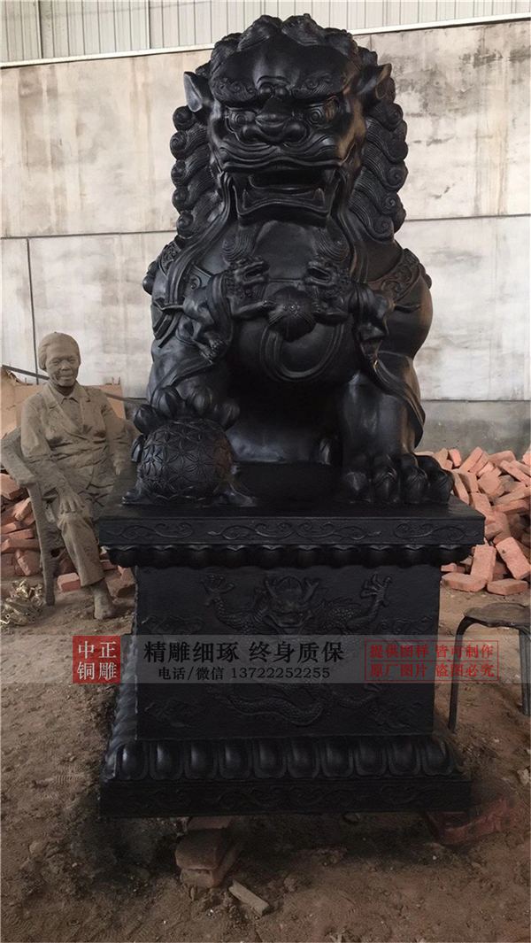 門的銅獅子的擺放是有規(guī)矩的。一般來說,都是一雄一雌,成雙成對的,而且一般都是左雄右雌,符合中國傳統(tǒng)男左女右的陰陽哲學(xué)。放在門口左側(cè)的雄獅一般都雕成右前爪玩弄繡球或者兩前爪之間方一個繡球;門口右側(cè)雌獅則雕成左前爪撫摸幼獅或者兩前爪之間臥一幼獅。 右前爪玩弄繡球的雄獅,左前爪撫摸幼獅的雌獅。石獅子在大門兩側(cè)的擺放都是以人從大門里出來的方向?yàn)閰⒄盏?。?dāng)人從大門里出來時,雄獅應(yīng)該在人的左側(cè),而雌獅則是在人的右側(cè)。而從門外進(jìn)入時,則剛好相反。