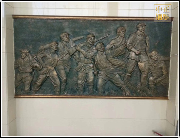 銅浮雕同時(shí)可以與建筑設(shè)計(jì),環(huán)境藝術(shù)、室內(nèi)設(shè)計(jì)、展示設(shè)計(jì)等領(lǐng)域相結(jié)合。在這種多樣空間形式的載體中.銅浮雕得到了更多的思維空間,就可能有更多突破和創(chuàng)新。反過來它也為這些藝術(shù)領(lǐng)域帶來更強(qiáng)的藝術(shù)教果和視覺審美的震撼。