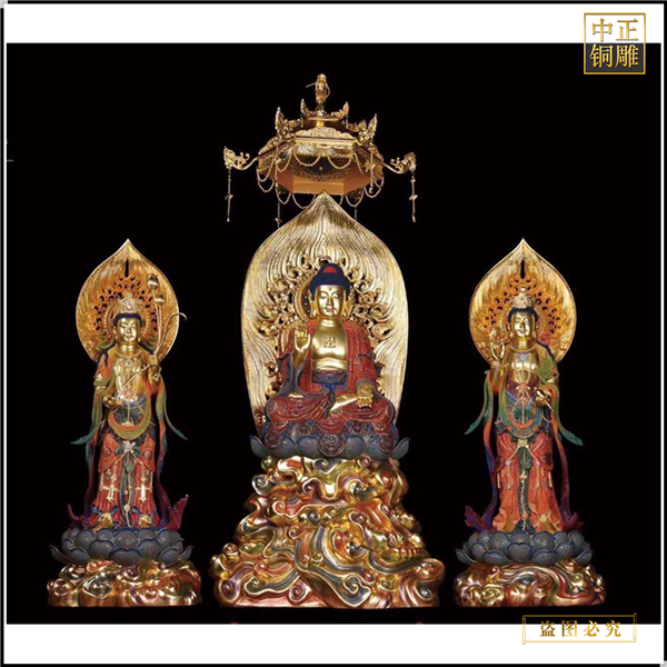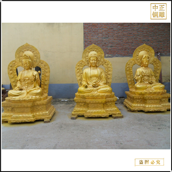 什么是西方三圣? 大家在去寺院的時候經(jīng)常會看到很多佛像,其中就有西方三圣銅佛像,西方三圣就是西方極樂凈土世界的阿彌陀佛,指的是西方極樂世界的阿彌陀佛,和觀世音菩薩、大勢至菩薩,這兩位菩薩是阿彌陀佛的兩位大弟子,觀世音菩薩代表大慈大悲,大勢至菩薩代表大喜大舍,表示菩薩的四無量心:慈、悲、喜、舍。