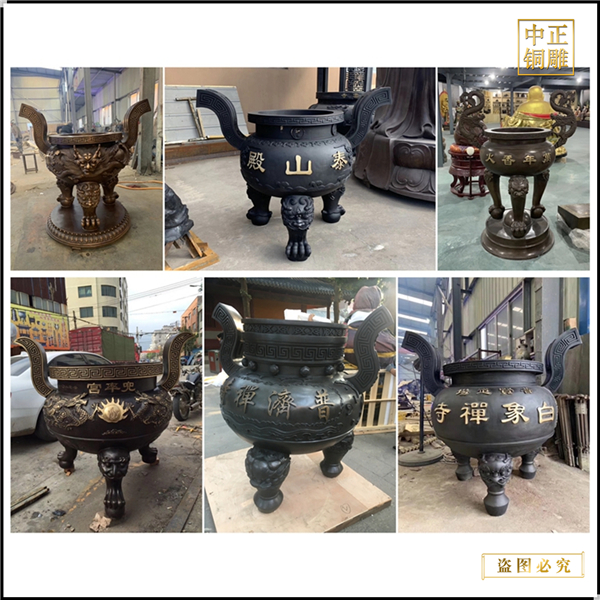 中正銅雕-寺院室外純銅香爐、寺院室外純銅香爐價格、寺院室外純銅香爐鑄造,我公司集科研、開發(fā)設計、普通鑄造、一次性整體澆鑄、精密鑄造于一體。本公司技術力量雄厚,設備,不但重視中國青銅器原有的藝術風格,還繼承了文物原有的藝術品味,在繼承和發(fā)揚古老文化的同時,更深一步為新老客戶定身量制各種銅制、鐵制工藝品等產品,曾多次受到寺廟長老和美術學院教授的好評。