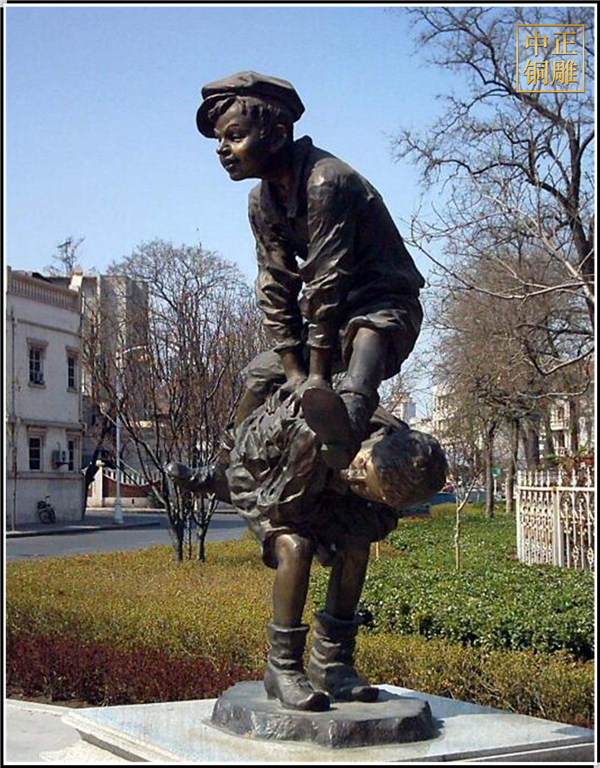 中正銅雕-兩個(gè)小男孩跳背人物銅雕塑、兩個(gè)小男孩跳背人物銅雕塑價(jià)格、兩個(gè)小男孩跳背人物銅雕塑廠家,本公司打造了一支強(qiáng)有力的管理隊(duì)伍和創(chuàng)新團(tuán)隊(duì),在國(guó)內(nèi)同行中成為佼佼者。加強(qiáng)與國(guó)內(nèi)知名專(zhuān)家的合作,提升公司的實(shí)力,打造公司文化品牌,提升公司的品牌價(jià)值及創(chuàng)造力,為社會(huì)創(chuàng)作更多有品位的雕塑作品。無(wú)論從黃銅鑄造,錫青銅鑄造都能熟練掌握其材料比例和配方。能使鑄件抗氧化,防腐蝕性,防酸,防堿及使鑄件外力沖擊而不折,能熟練鑄造銅鐘,銅鼎,編鐘,銅鼓等高難度的產(chǎn)品。