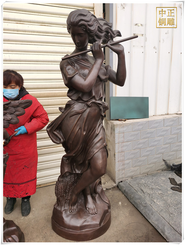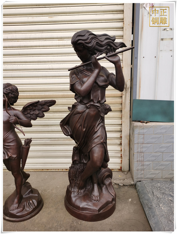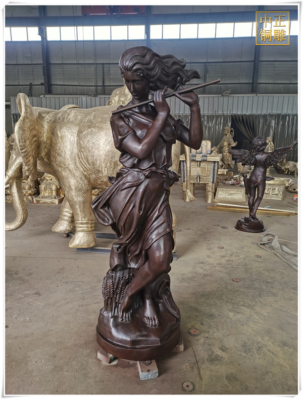 在中西方雕塑思維模式發(fā)展過程中,西方的雕塑文化形成了重視邏輯推理的思維模式,它結(jié)合古希臘的科學(xué)主義和理想主義,為雕塑藝術(shù)的典范奠定了重要基礎(chǔ);中國的雕塑文化則形成了強(qiáng)調(diào)直觀意向的思維方式,它通過直覺來直接體驗(yàn)、感悟并把握對象.這種思維方式超越了邏輯、概念而更長于悟性.中正銅雕-西方吹笛子女銅雕塑價(jià)格、西方吹笛子女銅雕塑圖片、西方吹笛子女女銅雕塑批發(fā),中正銅雕廠制作的西方吹笛子女銅雕塑總高1.9米,我廠主營各種銅雕塑制作,包含人物雕塑、動(dòng)物雕塑、銅雕佛像等等,制作工藝精湛、做工精細(xì),質(zhì)優(yōu)價(jià)廉,是您選擇訂購銅雕廠家不錯(cuò)的選擇。