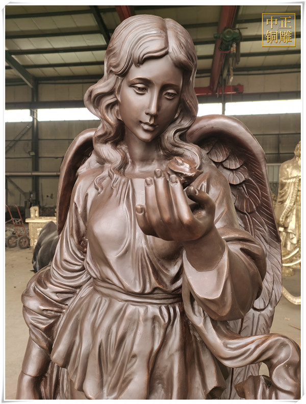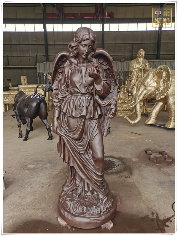 雕塑雖然制作困難,但是依舊以它獨有的魅力,吸引了許多人前赴后繼地拿起刻刀,從事雕塑的創(chuàng)作,在現代,依舊有許多雕塑家活躍在我們的眼前。而中正銅雕廠制作的西方天使女銅雕塑總高2米。