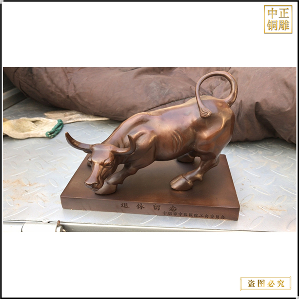 中正銅雕-華爾街銅牛雕塑擺件 華爾街銅牛雕塑擺件工藝品 小型華爾街銅牛雕塑擺件,我公司集科研、開發(fā)設(shè)計(jì)、普通鑄造、一次性整體澆鑄、精密鑄造于一體。本公司技術(shù)力量雄厚,設(shè)備,不但重視中國(guó)青銅器原有的藝術(shù)風(fēng)格,還繼承了文物原有的藝術(shù)品味,在繼承和發(fā)揚(yáng)古老文化的同時(shí),更深一步為新老客戶定身量制各種銅制、鐵制工藝品等產(chǎn)品。