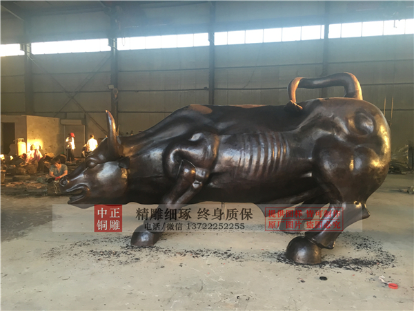 牛給人的印象,是一種溫順而踏實(shí)的動物,肯吃苦、憨厚樸實(shí),是人類的好幫手,而銅牛雕塑的多樣造型,具有著力量與旺財(cái)?shù)南笳饕饬x,尤其在現(xiàn)代化的今天,銅牛雕塑更被賦予了開拓創(chuàng)新、積極進(jìn)取、團(tuán)結(jié)奉獻(xiàn)的精神意義,所以說,銅牛雕塑不僅僅是一種雕塑產(chǎn)品,更是一種精神的象征,能夠給人以思想上的激勵,在企業(yè)當(dāng)中尤為適用。中正銅雕-華爾街銅牛雕塑廠家,定做華爾街銅牛雕塑廠家,大型華爾街銅牛雕塑廠家,唐縣中正銅雕工藝品廠是鑄銅雕塑的廠家。擁有設(shè)計(jì)師和雕塑團(tuán)隊(duì),引進(jìn)的鑄造技術(shù),開發(fā)出一系列的藝術(shù)性銅制工藝品。