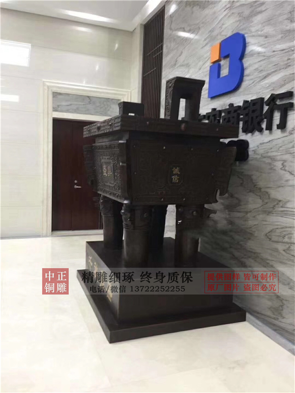 中正銅雕-銀行誠信鼎,銀行誠信鼎價格,定做銀行誠信鼎,我司愿與天下有識之士,真誠相待、真情相融,共謀進取、共創(chuàng)輝煌!以優(yōu)質的工藝和設備與科學規(guī)范的管理相結合是我們中正銅雕塑質量創(chuàng)造工藝名牌的基礎。