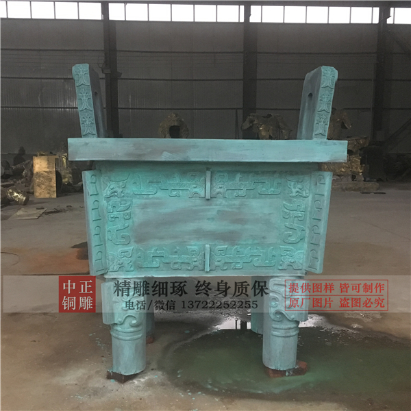 眾所周知,相比于純銅,青銅的硬度非常高(青銅是銅和錫或鉛或砷等元素的合金),古人在制作一些小而薄的青銅器時(shí),可以采用錘揲、鏨刻的方法來(lái)成型并增加紋飾,但是如果想要制作出器型大、器壁厚的銅器,就無(wú)法錘揲成型,也無(wú)法直接在器身上直接雕刻花紋了,必須通過(guò)鑄造的方法來(lái)同時(shí)完成成型和裝飾。中正銅雕-定制青銅寶鼎,加工定制青銅寶鼎,批發(fā)定制青銅寶鼎,我廠(chǎng)成立于2014年.我公司是唐縣銅雕的知名企業(yè),主要以各種大型銅雕鑄造加工于一體.主要產(chǎn)品有,寺廟佛像、香爐、銅鐘、城市雕塑、動(dòng)物雕塑、偉人雕塑、西方人物、銅浮雕等,品種齊全,價(jià)格合理。