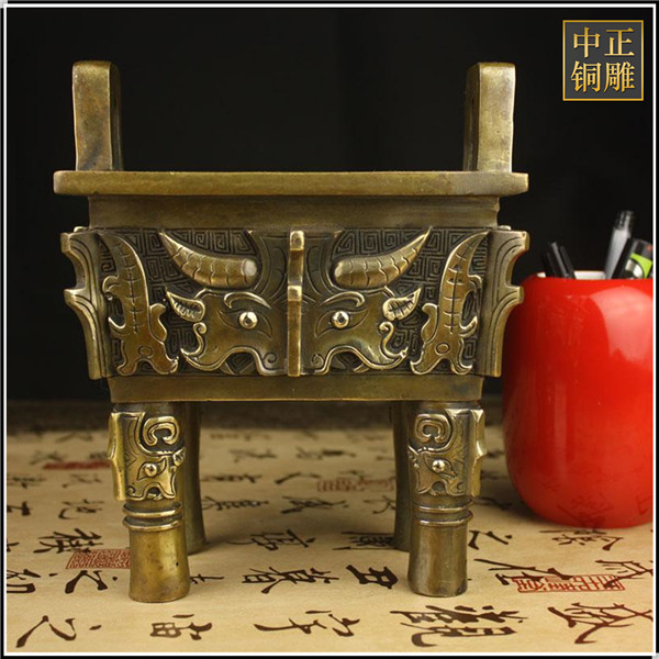 圓鼎:是流行時間最長的鼎式,基本形制是腹腔圓而深,耳小直立于口緣上,三足為錐形.商代中期以前的圓鼎,體薄口寬,小立耳呈半圓形,深腹,三錐足又短又矮,足內(nèi)是空的,與腹部相通.有一耳與一足對齊,另一耳在另外兩足之間.做工較粗,有明顯的鑄痕.商代晚期的圓鼎。體厚口有方唇,立耳變大,柱足流行.足與耳的位置發(fā)生變化,有一足必與兩耳等距,另兩足在雙耳的同側(cè);圓腹變淺,圓底;商代圓鼎約有14種基本式樣。圓鼎上的刻字有時也是國家和民族權(quán)威的象征的代表。寓意著向往美好新的開始的祈愿!對國家民族及家族的崇敬之禮。中正銅雕-四足獸面銅鼎、四足獸面銅鼎價格、四足獸面銅鼎廠家,我廠是一家以設計、制作、安裝為一體的發(fā)展型企業(yè)。公司坐落在中國銅雕之鄉(xiāng)---河北唐縣,成立于1984年。公司自成立以來,以優(yōu)質(zhì)的雕塑工藝,優(yōu)異的性價比,一體化的銷售網(wǎng)絡,高效、完善的售后服務,飛速發(fā)展。成為了擁有設計、銷售、生產(chǎn)、安裝、維護為一體的銅雕塑制作商。